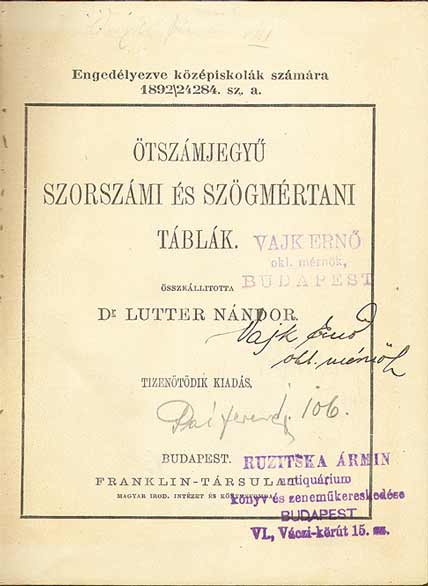 | Ötszámjegyű szorszámi és szögmértani táblák. |