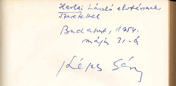 | Első kiadás. Kiadói félvászon kötésben, a dedikáció az előzéklapon. Dedikált: „Hartai László elvtársnak, / szeretettel / Budapest, 1954./ május 31-én / Képes Géza ” |