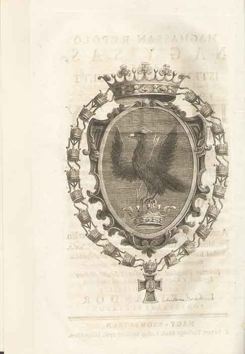 Folio. A címlap verzóján nagyméretű szignált rézmetszeten az Illésházy címer míves képe. Félnyl kötésben.