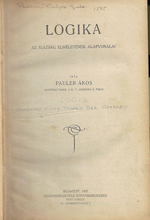 Pauler Ákos: Logika / Az igazság elméletének alapvonalai