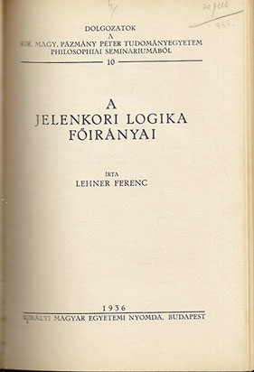 [Lehner Ferenc József] Lehner Ferenc: A jelenkori logika főirányai