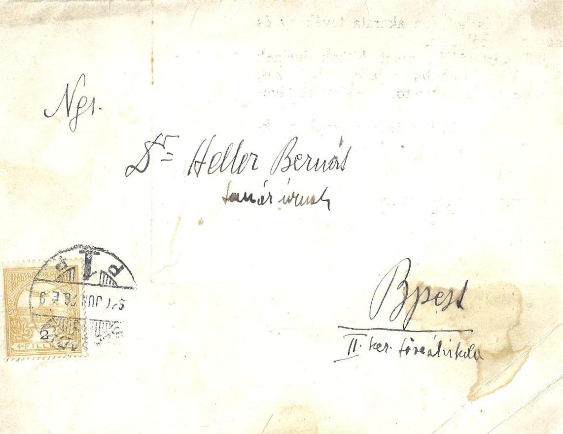 Széles fekete kereteléssel. Postán futott, címzett: Heller Bernát.