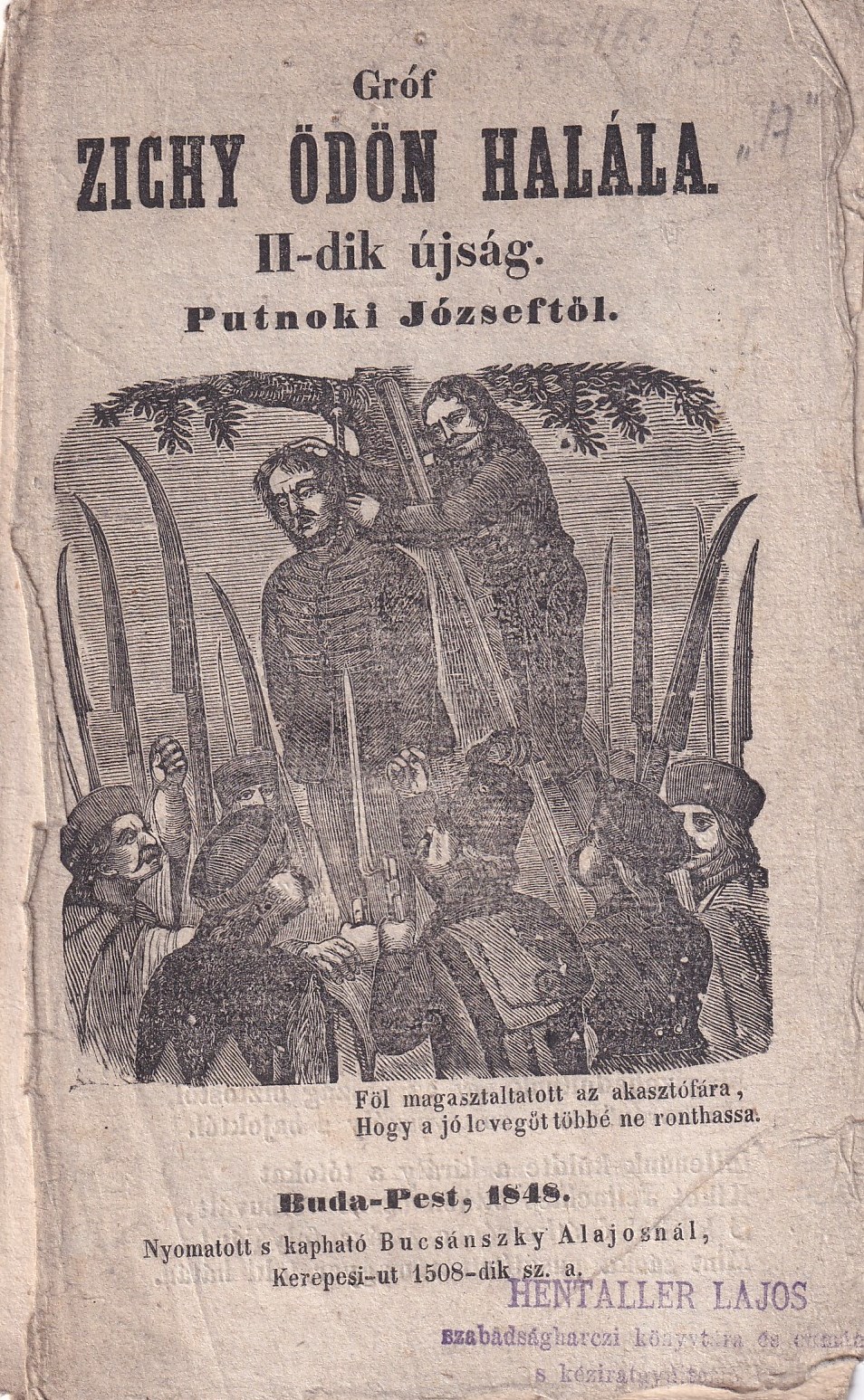 | Szüry 0. A címlapon nagyméretű fametszeten a kivégzés ábrázolása, a verzón is egy fametszet. Viseltes lapokkal, a címlapon jeles tulajdonbélyegzővel, A negyedik levél verzóján alul: Következik a III. ujság./ Latour becsi munister/ az akasztófán. |