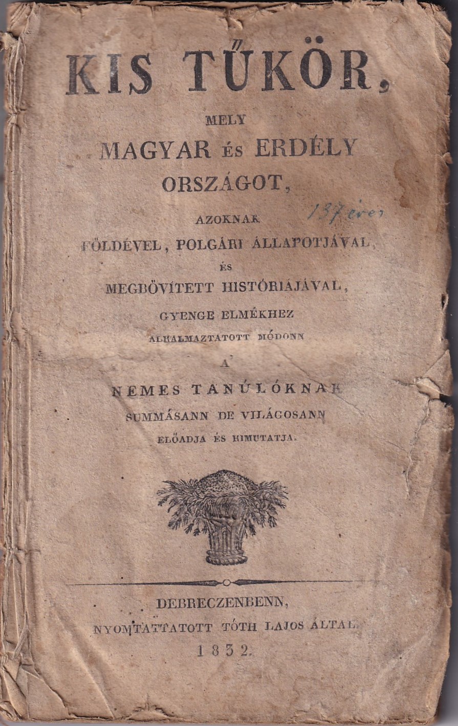 | Kis tűkör, melly Magyar és Erdély országot, azoknak földével, polgári állapotjával, és megbővített históriájával, gyenge elmékhez alkalmaztatott [...] |