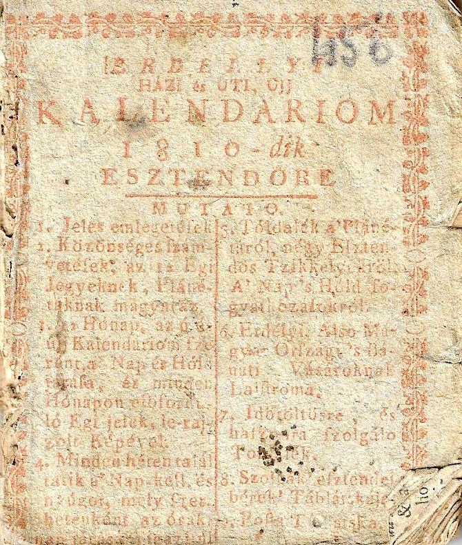| Erdélyi Ó és Uj Kalendárioma [...] 1810-dik [...] esztendőre. |