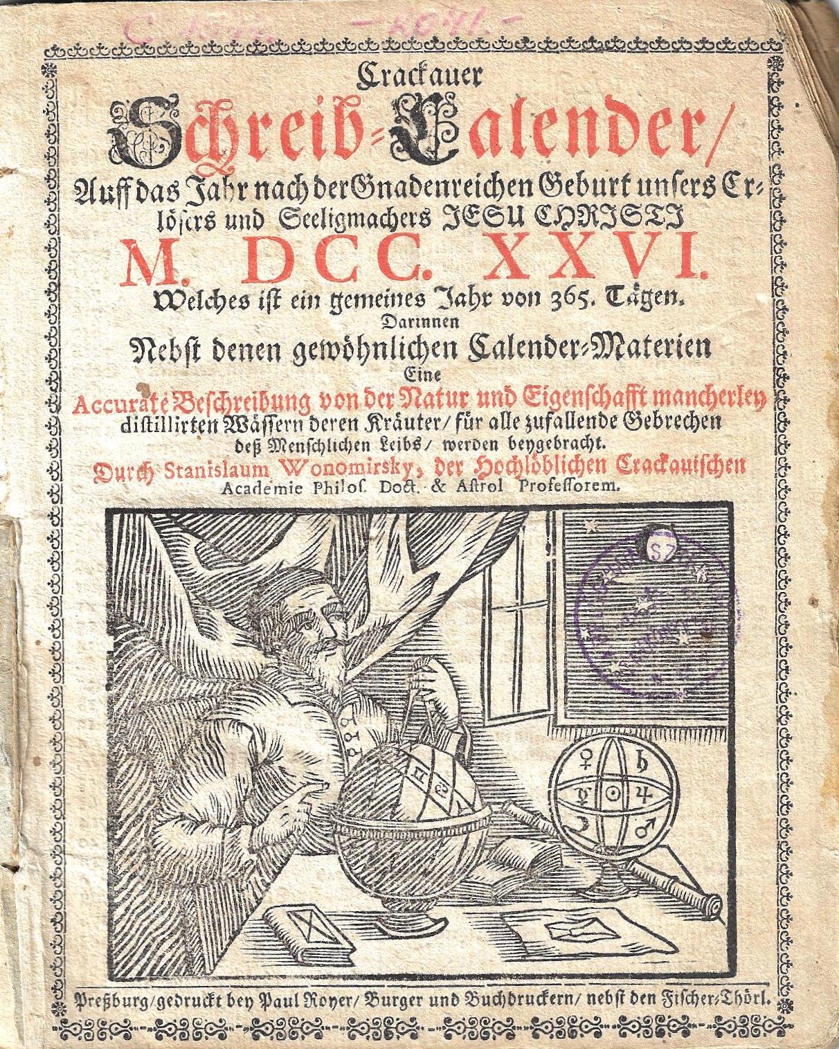 | Crackauer Schreib-Kalender auf das Jahr [...] M. DCC. XXVI. [1726] [...] |