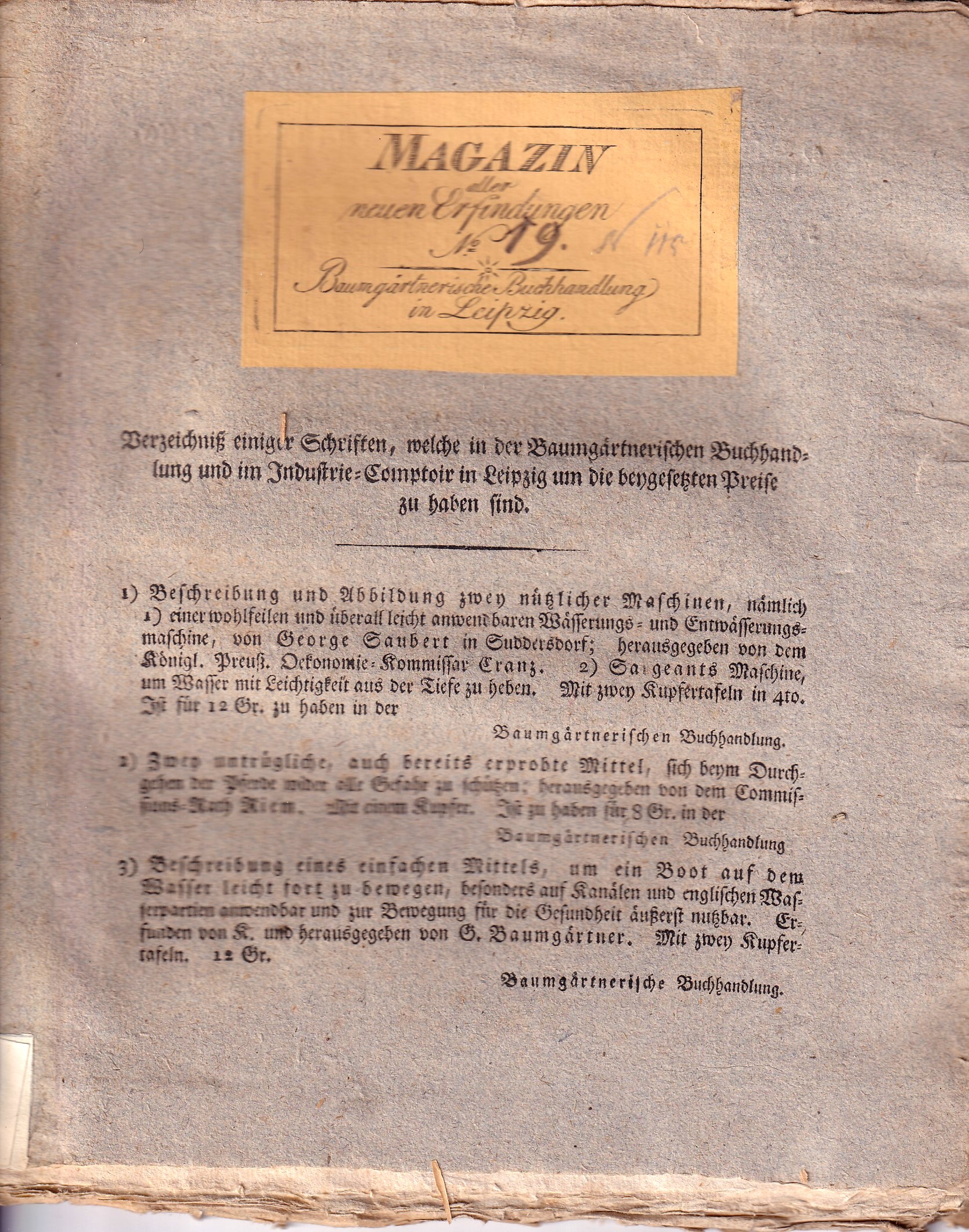 | Magazin aller neuen Erfindungen, Entdeckungen und Verbesserungen für Fabrikanten, Manufakturisten, Künstler, Handwerker und Oekonomen [...] |